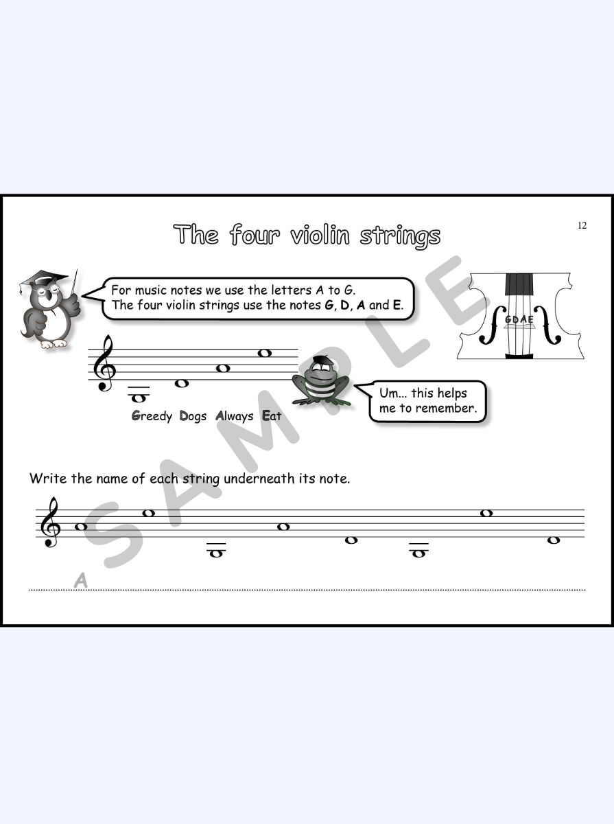 The book begins with the stave and treble clef – exactly where violin students need to start – and introduces notes that reflect the instrument’s open strings rather than defaulting to piano-based middle C. By aligning theory with what students are physically playing in their early lessons, new concepts feel logical, relevant and immediately useful.